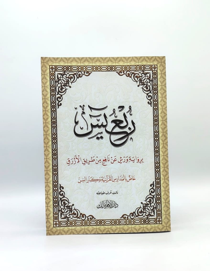 هذا الكتاب هو جزء من القرآن الكريم، وتحديدًا ربع من سورة يس. يقدم برواية ورش عن نافع من طريق الأزرق، إحدى القراءات المعروفة. هو طبعة خاصة موجهة للمدارس القرآنية وكبار السن لتسهيل الحفظ والتلاوة. نالت دار الامظر مالك شرف طباعته.